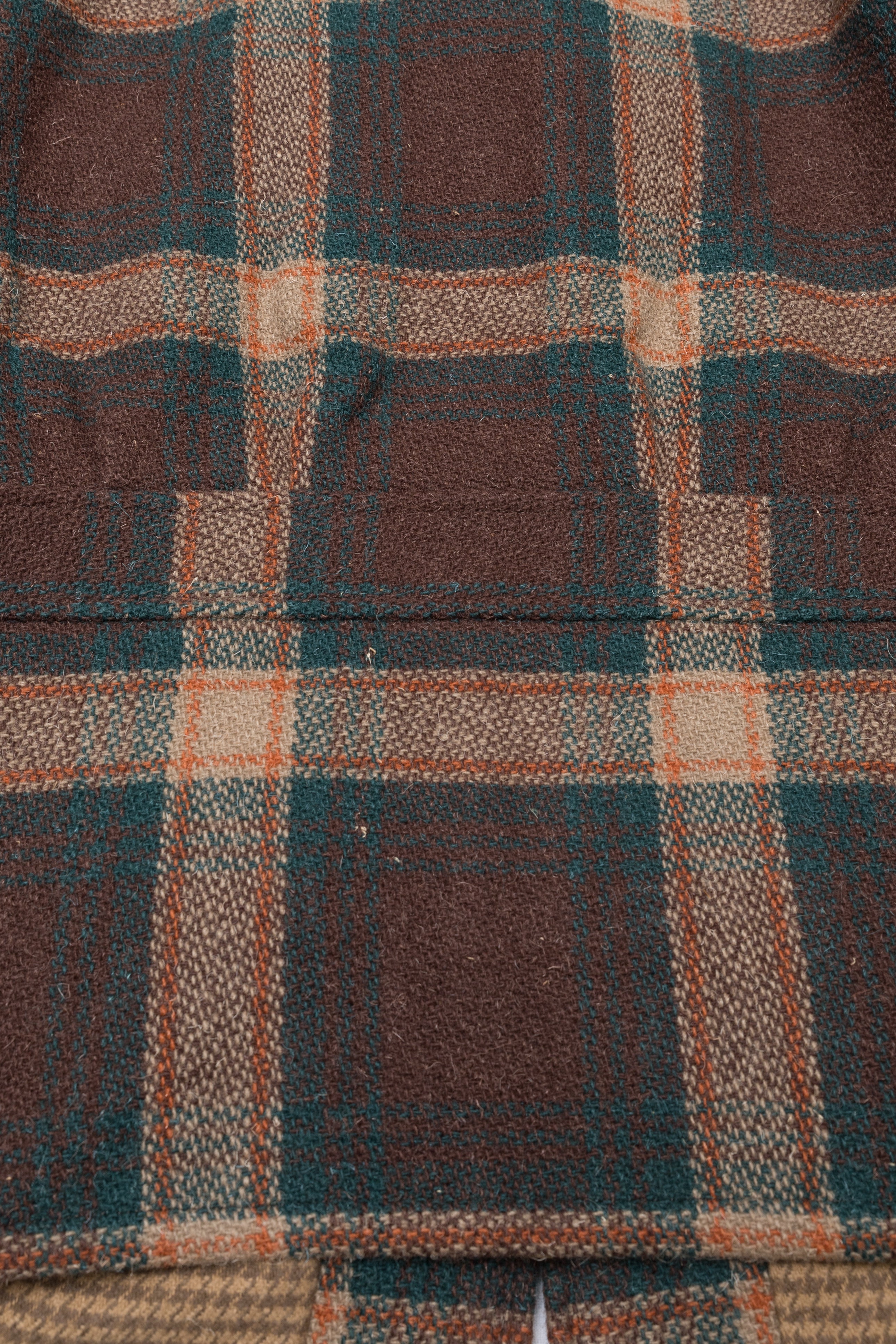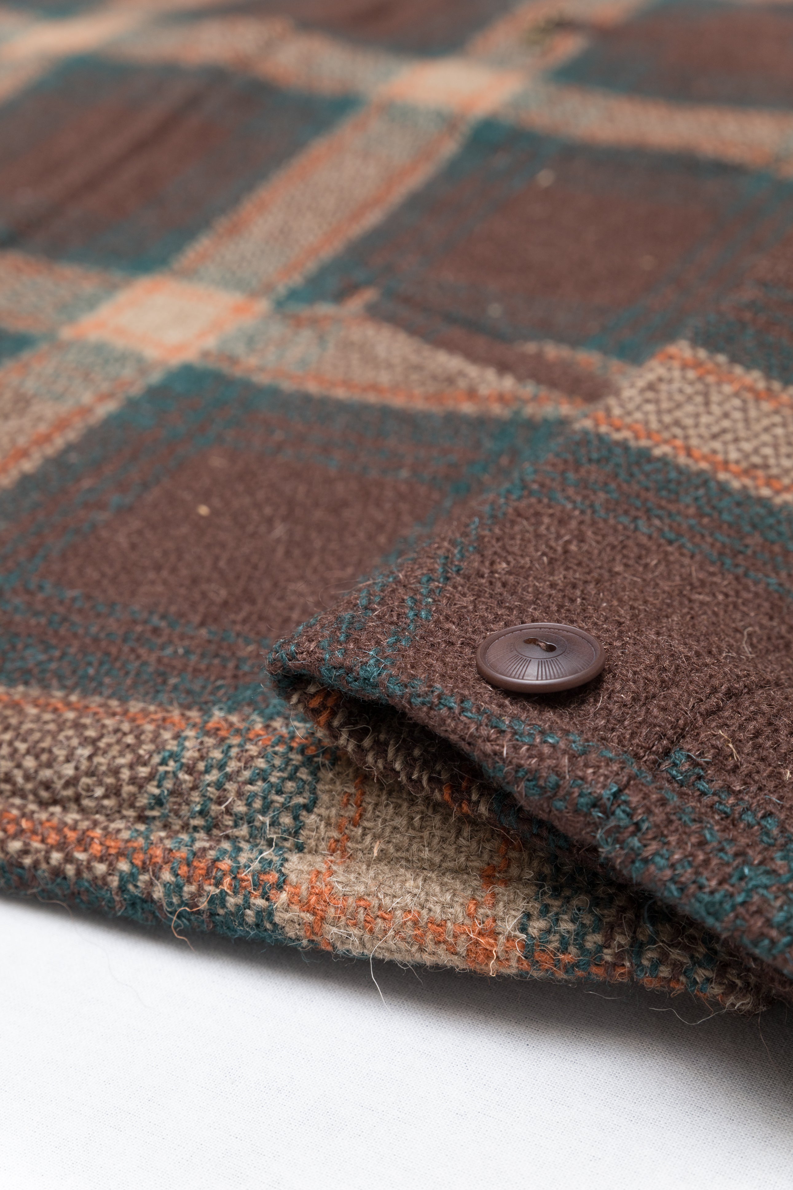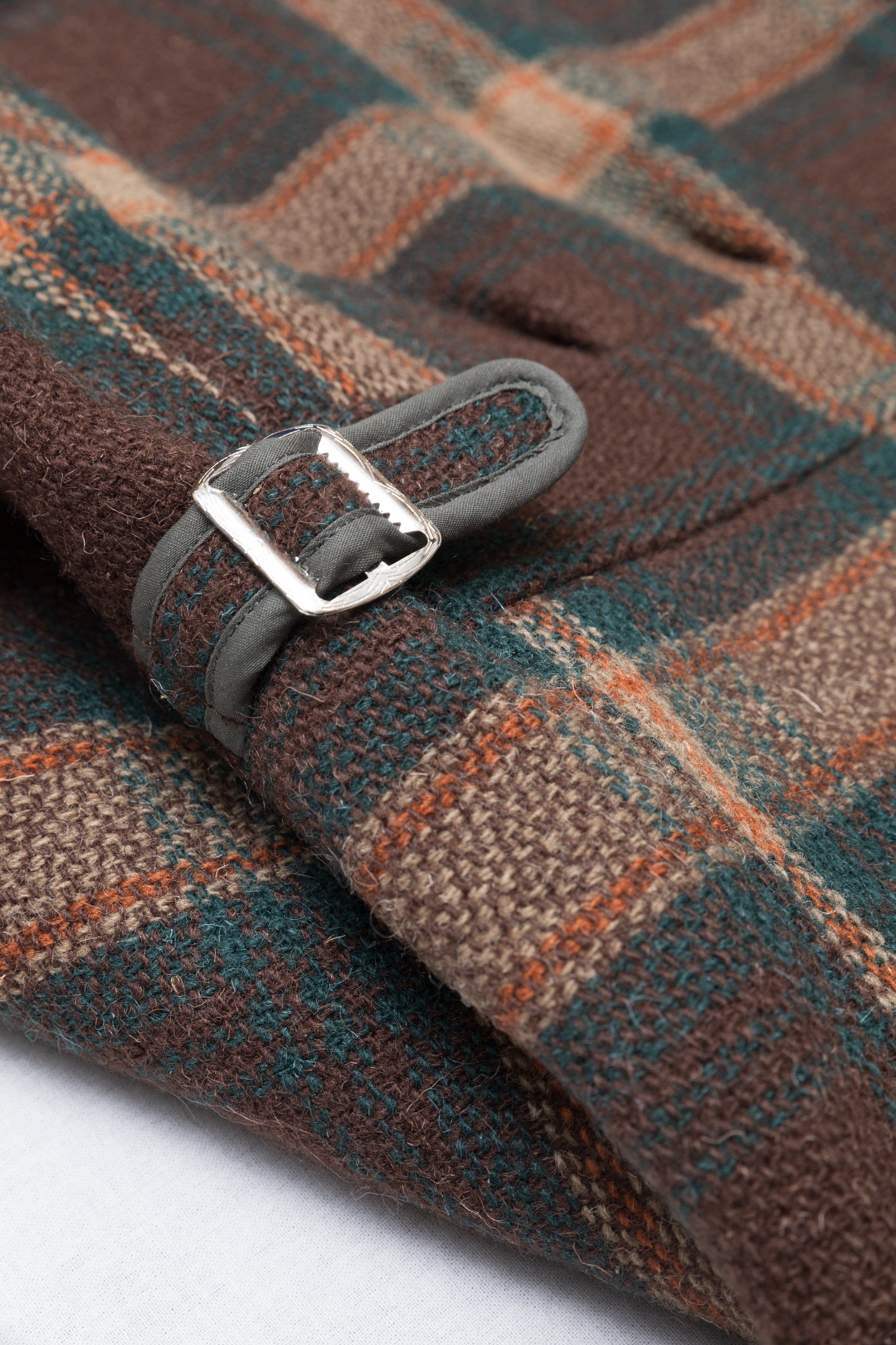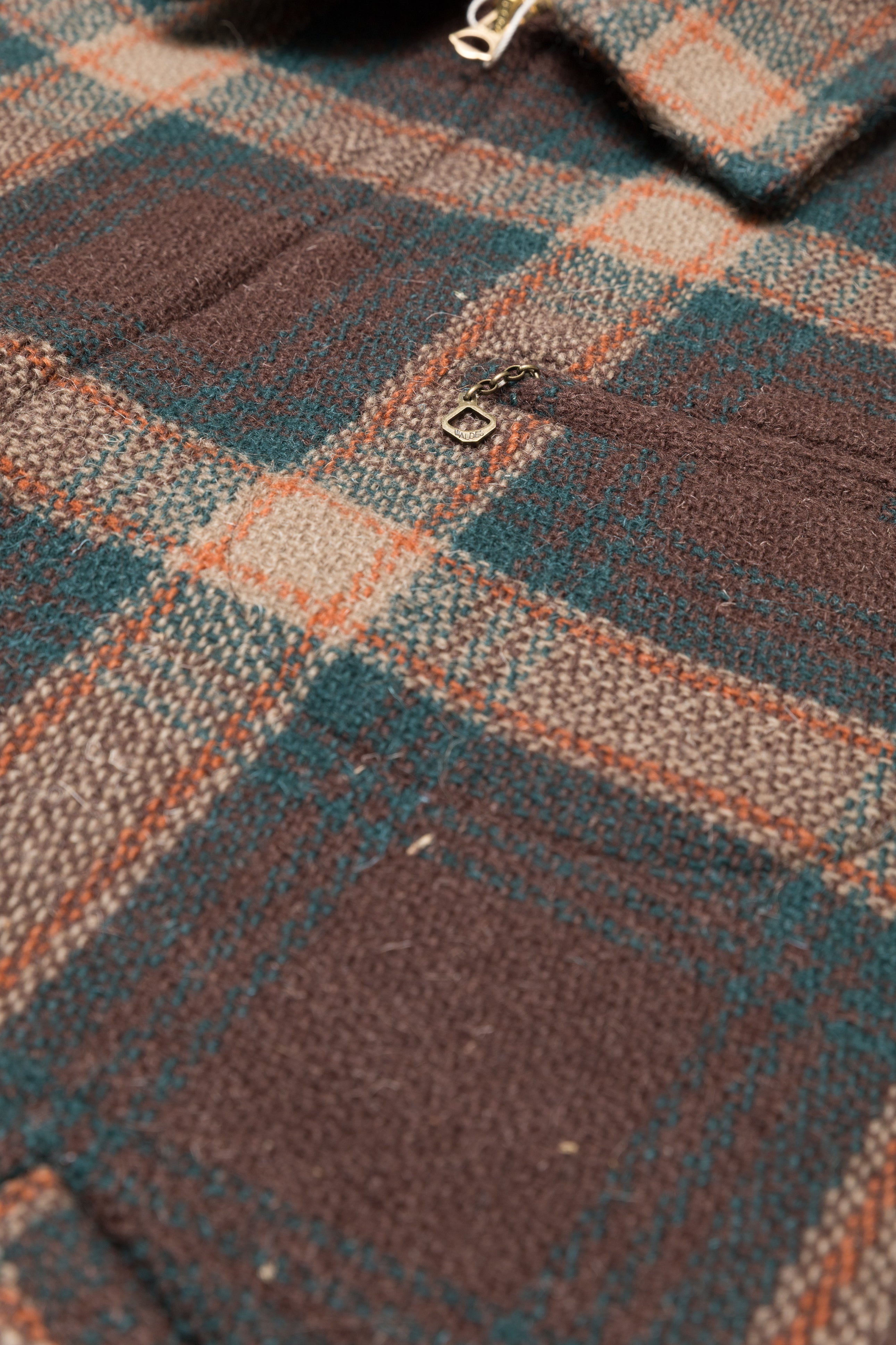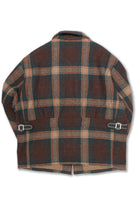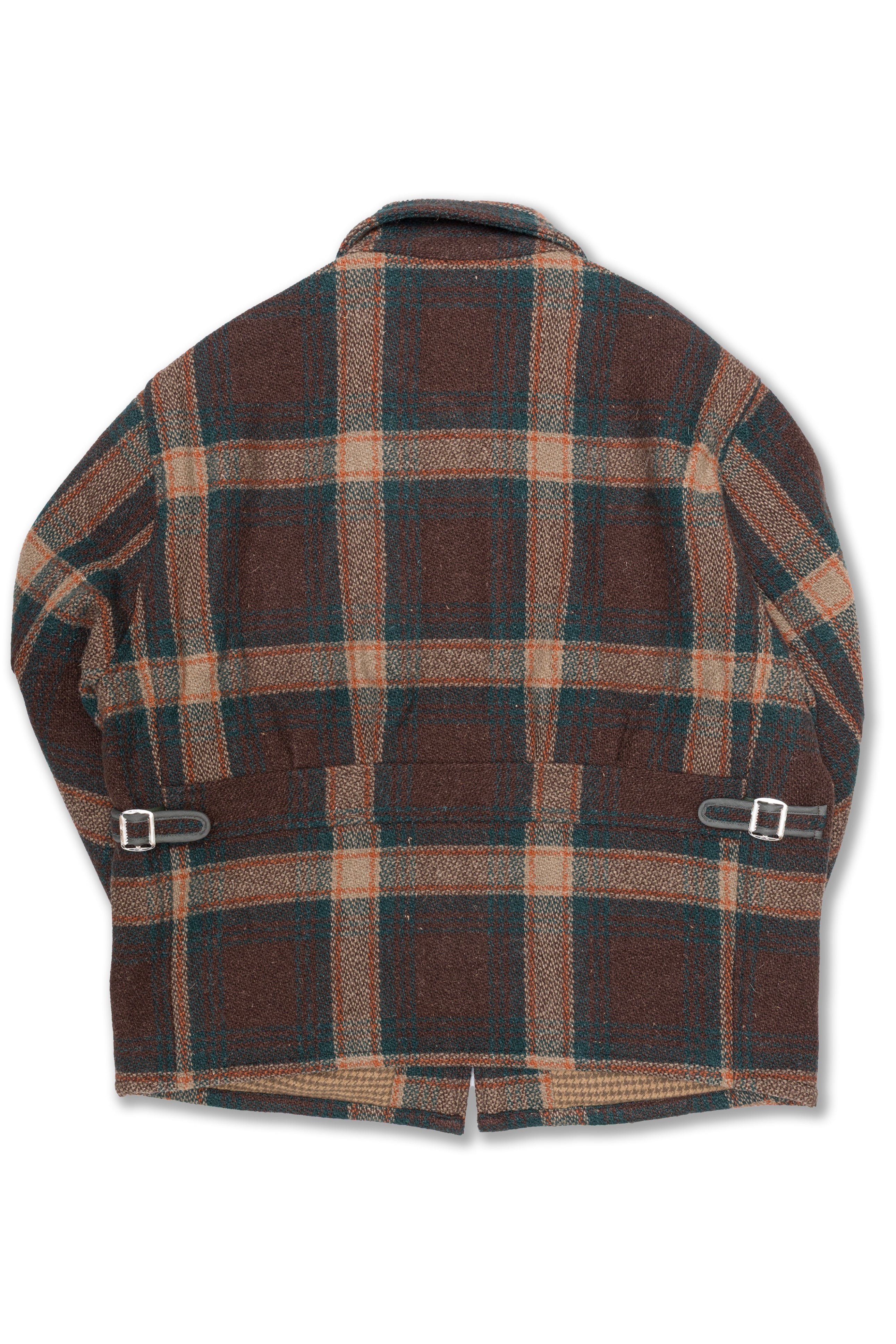 This wool plaid jacket draws inspiration from the iconic HERCULES archive, featuring authentic checked patterning woven from premium natural fibers. The tailored back incorporates a fixed half-belt with structured pleating for refined proportions, complemented by functional side adjusters at the waist. A vintage reproduction TALON zipper with distinctive fan detailing anchors the front closure, while the chest pocket showcases a brass five-chain slider for authentic period detailing. The interior is lined with brushed houndstooth flannel, delivering substantial warmth and tactile comfort throughout wear.