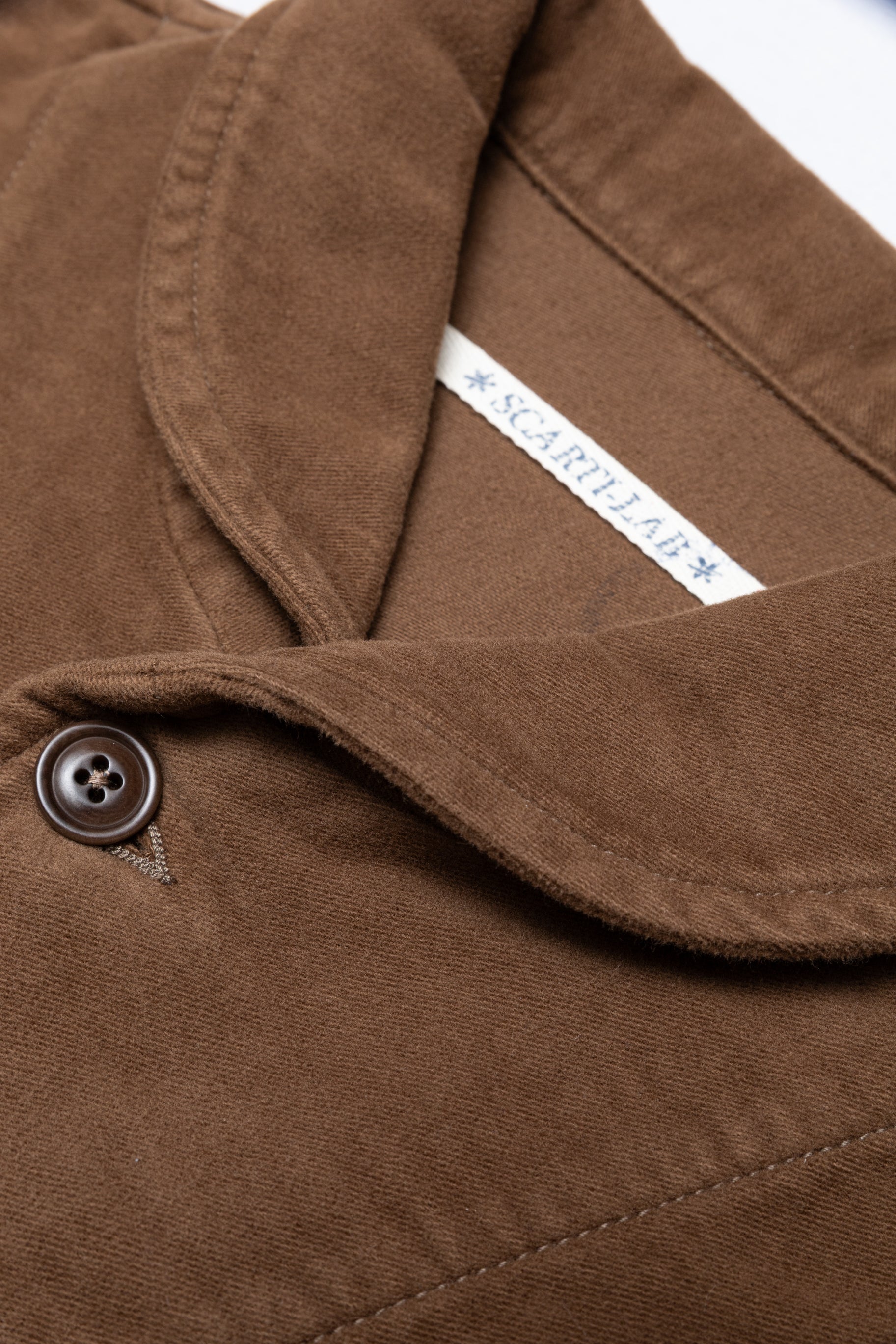 Discover the 707, Scartilab's masterful take on the iconic cossack jacket, elevated with a sophisticated shawl collar. The jackets comes unlined, crafted from a super soft cotton moleskin fabric.