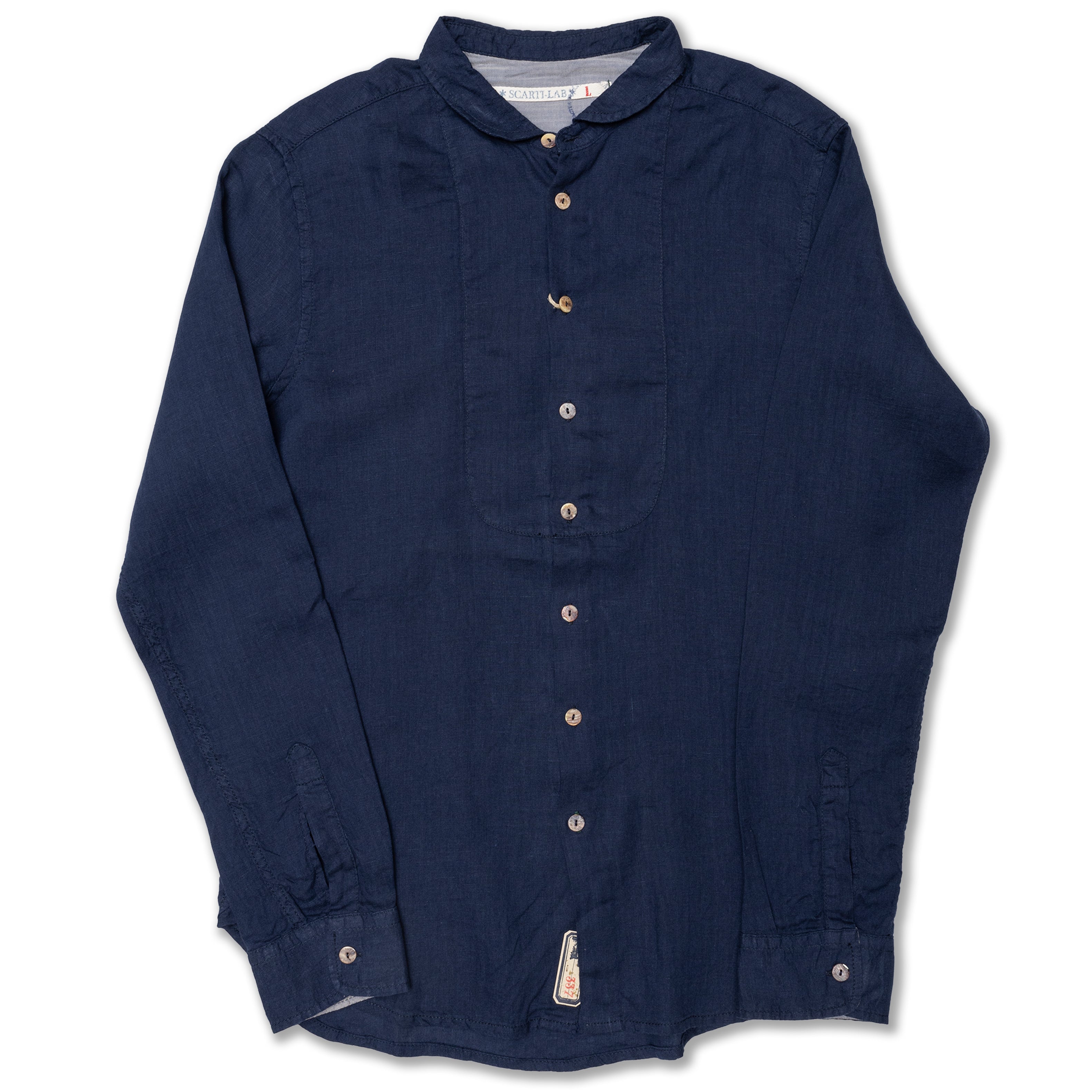 Introducing the newest addition from Scartilab: the 337-SV437 L/S Shirt. This simplified version of the 310 shirt features a smaller shawl collar and a sewn-in vintage front bib. Made from 100% linen, this shirt offers a vintage touch and is ideal for warmer temperatures.