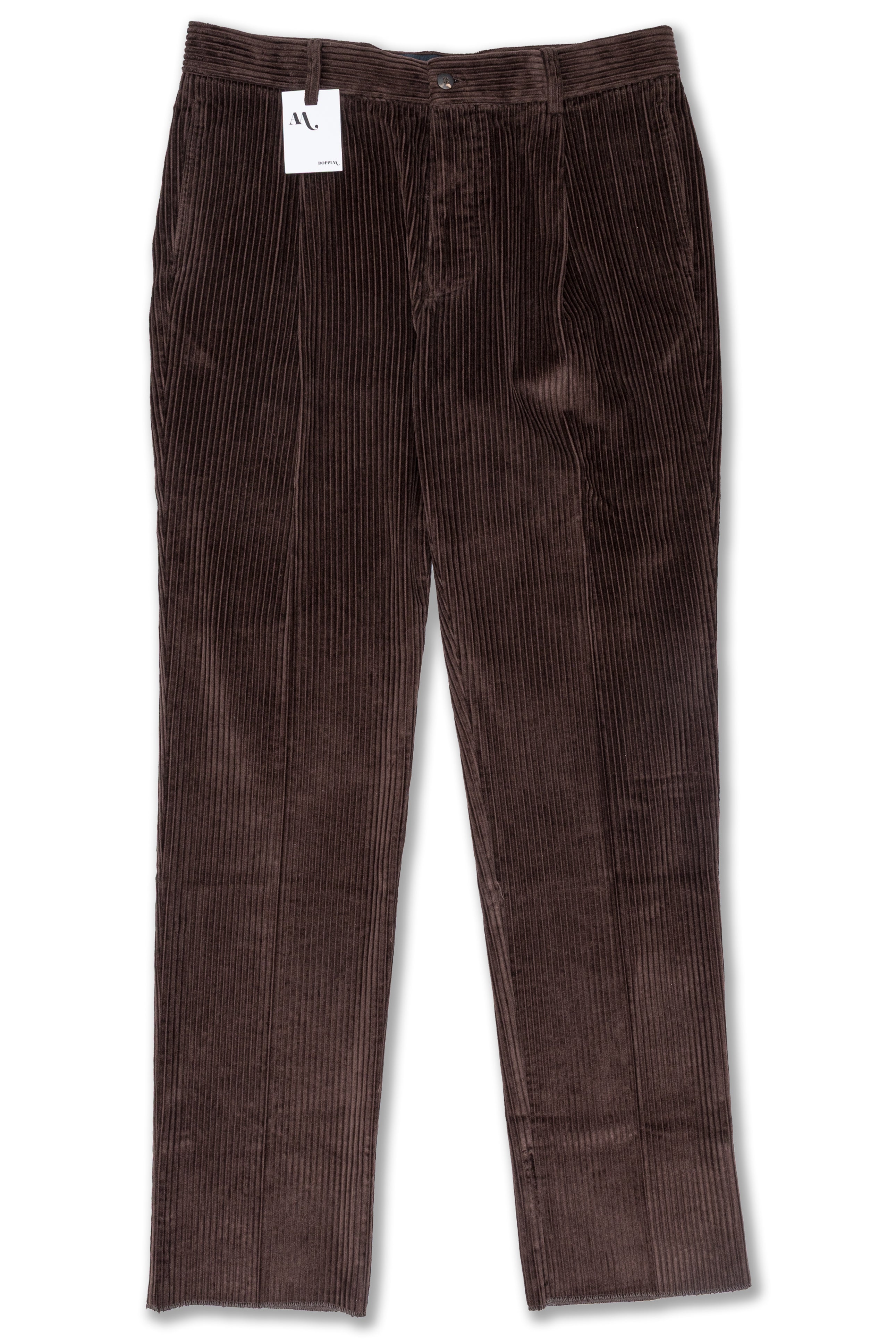 AANTIOCO Pleated Trousers in Red/Brown Wide Wale Corduroy