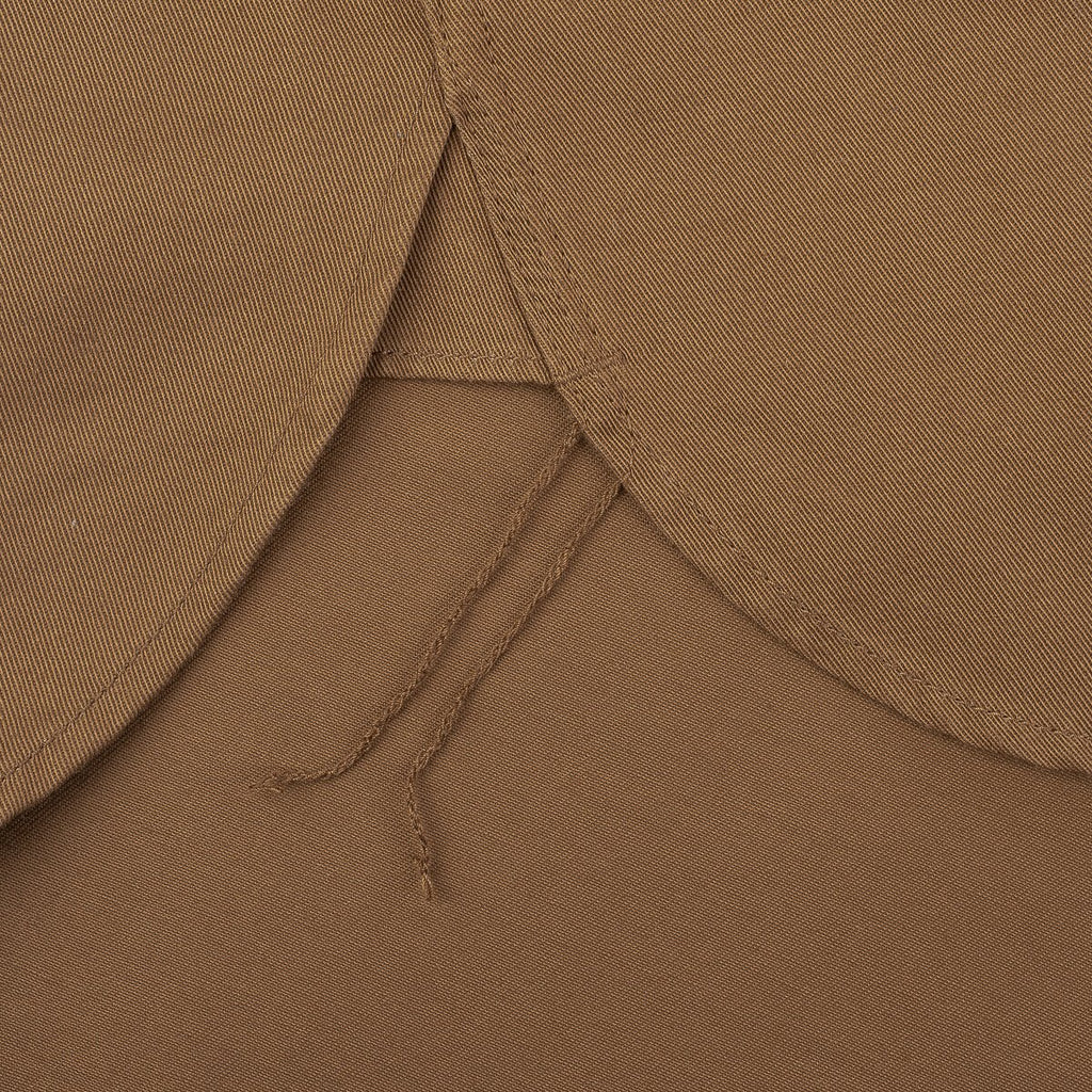 A classic work shirt, constructed from a left-hand twill cotton chino, a fabric that is usually reserved for the production of trousers. This chino cloth has a soft but stiff handle to it for its weight. The fabric is reactive dyed and will retain its colour despite regular wear.