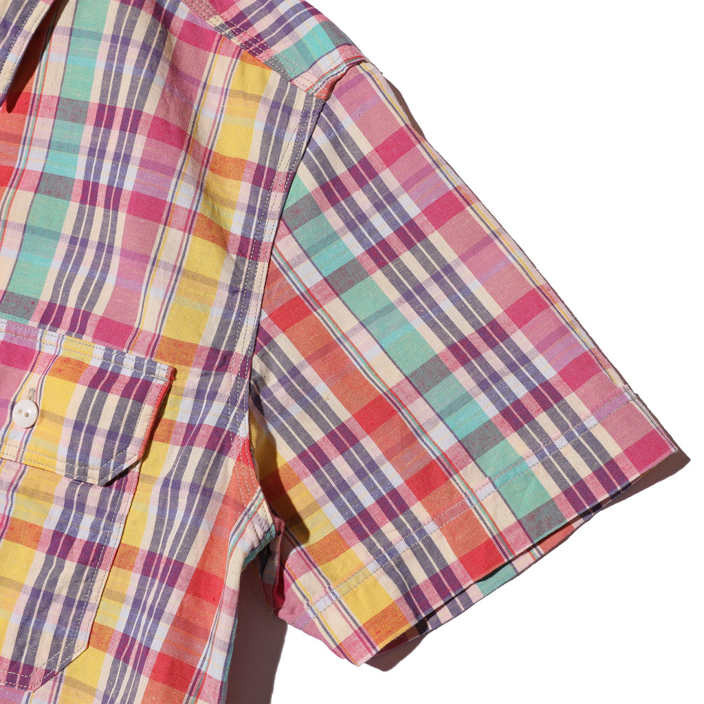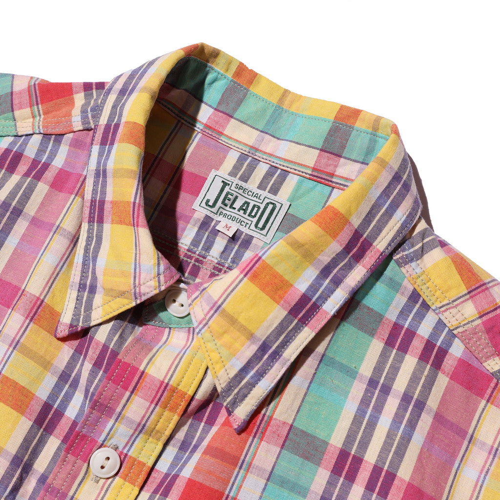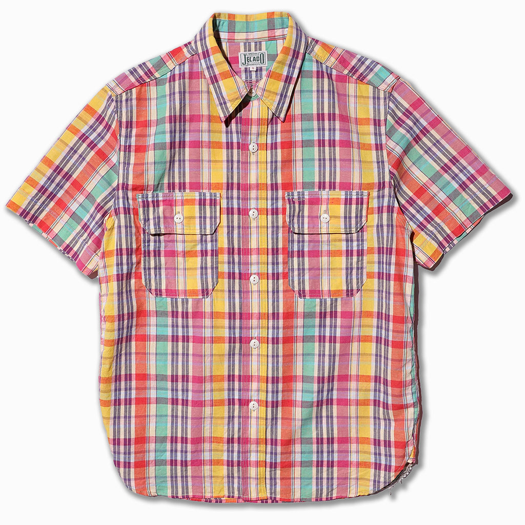 Jelado wanted to pay hommage to those short-sleeved shirt with a modern fabric reminiscent of Ralph Lauren Madras Check of the 1980s. But they kept the original details of the 1950s work-shirts such as double needle and triple needle stitching, front flap pockets, etc.